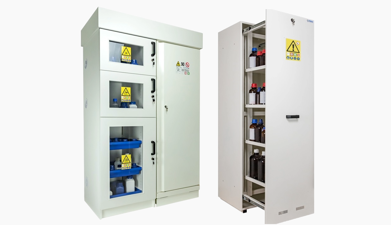 Chemical storage cabinets - designed to store a variety of chemicals, including acids, bases and toxic substances. These cabinets have independent compartments that allow you to safely store different types of chemicals in one cabinet without the risk of mixing them up.